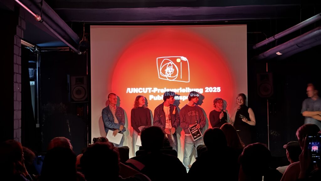 Das Festival fand am 4. Oktober 2025 in der Filmwerkstatt Düsseldorf statt und war so gut besucht, dass uns sogar die Stühle ausgingen! Alle Preisträger:innen und weitere Bilder vom Abend gibt es auf der Website und der Instagram-Seite des Uncut Award!